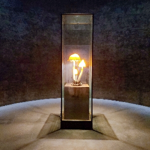 에밀 갈레의 유리공예 전시는 조명과 작품이 어우러져 예술적인 분위기를 자아냅니다. 플래시 사용 없이 자연스럽게 촬영하면 더욱 좋습니다.