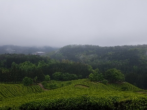 주변 산과 차밭이 함께 어우러져 황홀한 전경 연출